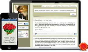 Tribute WallMemorial sites not only allow you to share stories, photos, and videos of your loved one; they also allow you to connect with family and friends. When visiting the Celebration Wall, guests can leave text comments to share condolences, offer words of support and sympathy through video or audio messages, or leave a meaningful symbol when words just aren't enough. Guests can also view the obituary and service information, and order gifts and flowers directly through the site. This page serves as a permanent virtual tribute to your loved one, and a place you can return whenever you'd like to revisit memories and reconnect with messages of support and love.